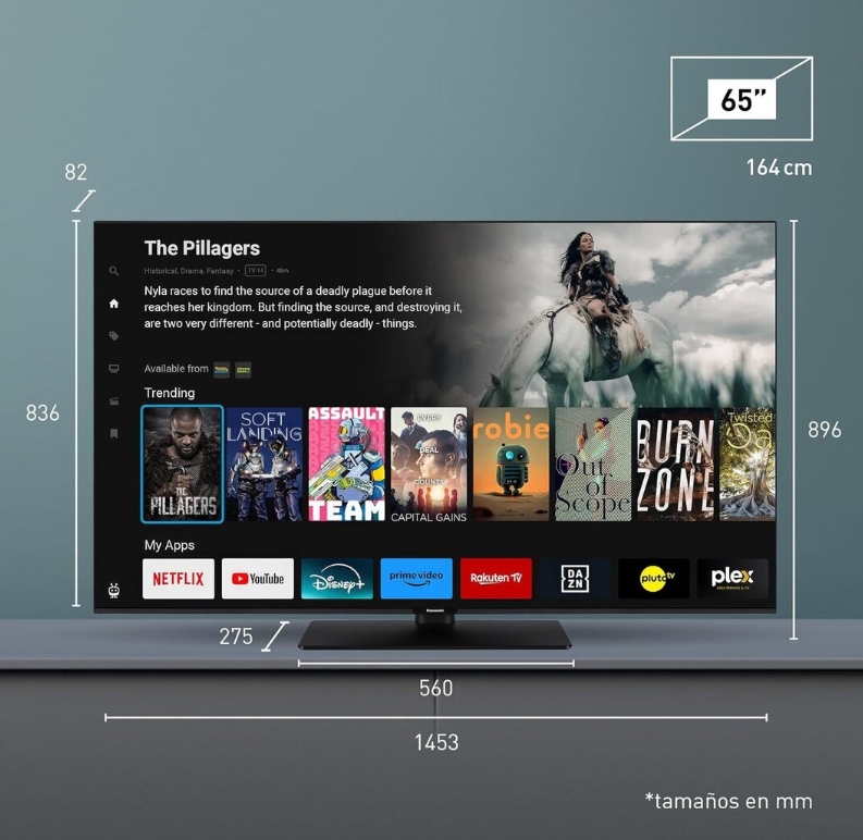 El Panasonic TB-65W61AEZ Smart TV 65” es perfecto para quienes buscan un televisor moderno, con gran calidad de imagen y un sistema operativo inteligente, ideal para cine, series y videojuegos.