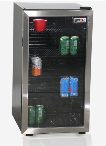 Vitrina Frigorífica Rommer XLS 150 – 88L, Clase C, Puerta Cristal, Inox, Termómetro Digital, LED, 4 Estantes