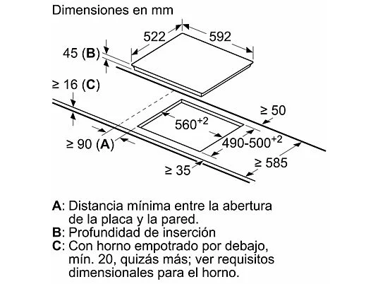• Ancho de compartimiento de instalación: 56 cm